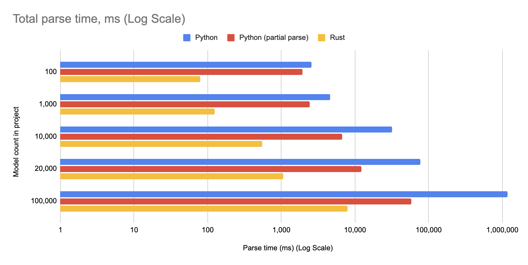 - If your project isn't currently eligible for partial parsing, cold parses in Rust are fast enough to make it a moot point.